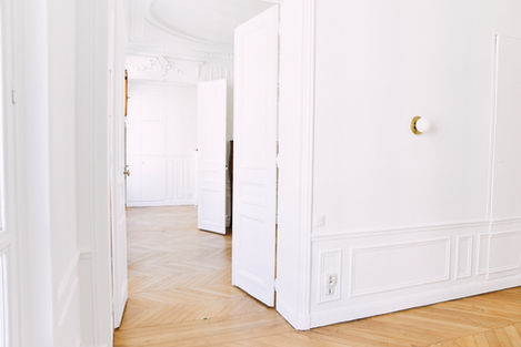 Rénovation d'un bel appartement Haussmannien complètement rénové du sol au plafond. Peintures, enduits, sols ainsi que la cuisine et la salle de bain ont été entièrement retravaillé afin de mettre en location sans engager trop de budget.
